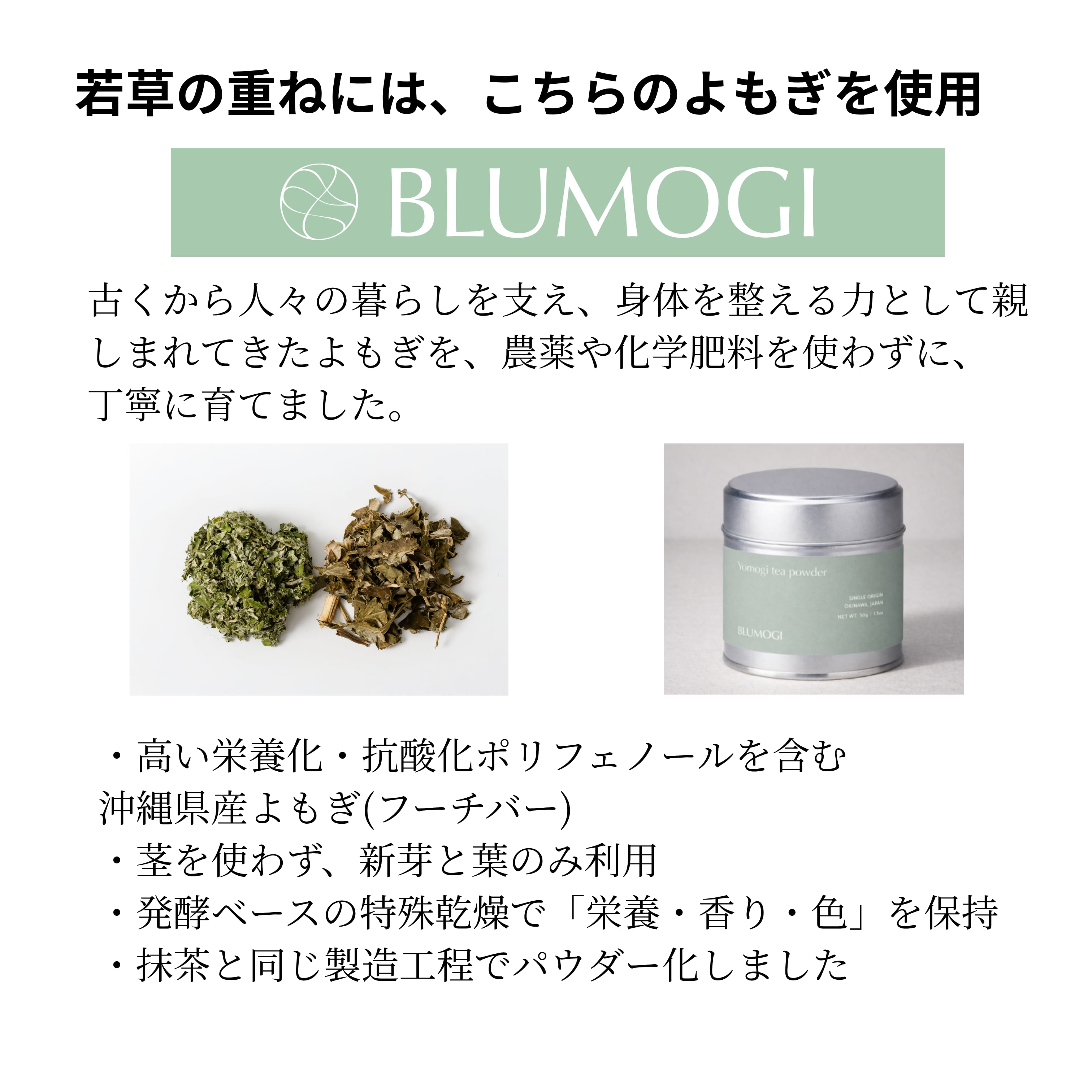 本商品に使用している『BLUMOGI』のよもぎパウダーは、